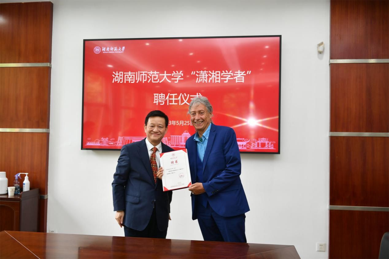 (记者 马铁泉 冯振辉)5月25日下午,我校在校办公楼二楼会议室举行聘任仪式,聘请Ottmar Ette教授为我校“潇湘学者”特聘教授。校党委书记蒋洪新出席仪式。仪式由副校长唐贤清主持。