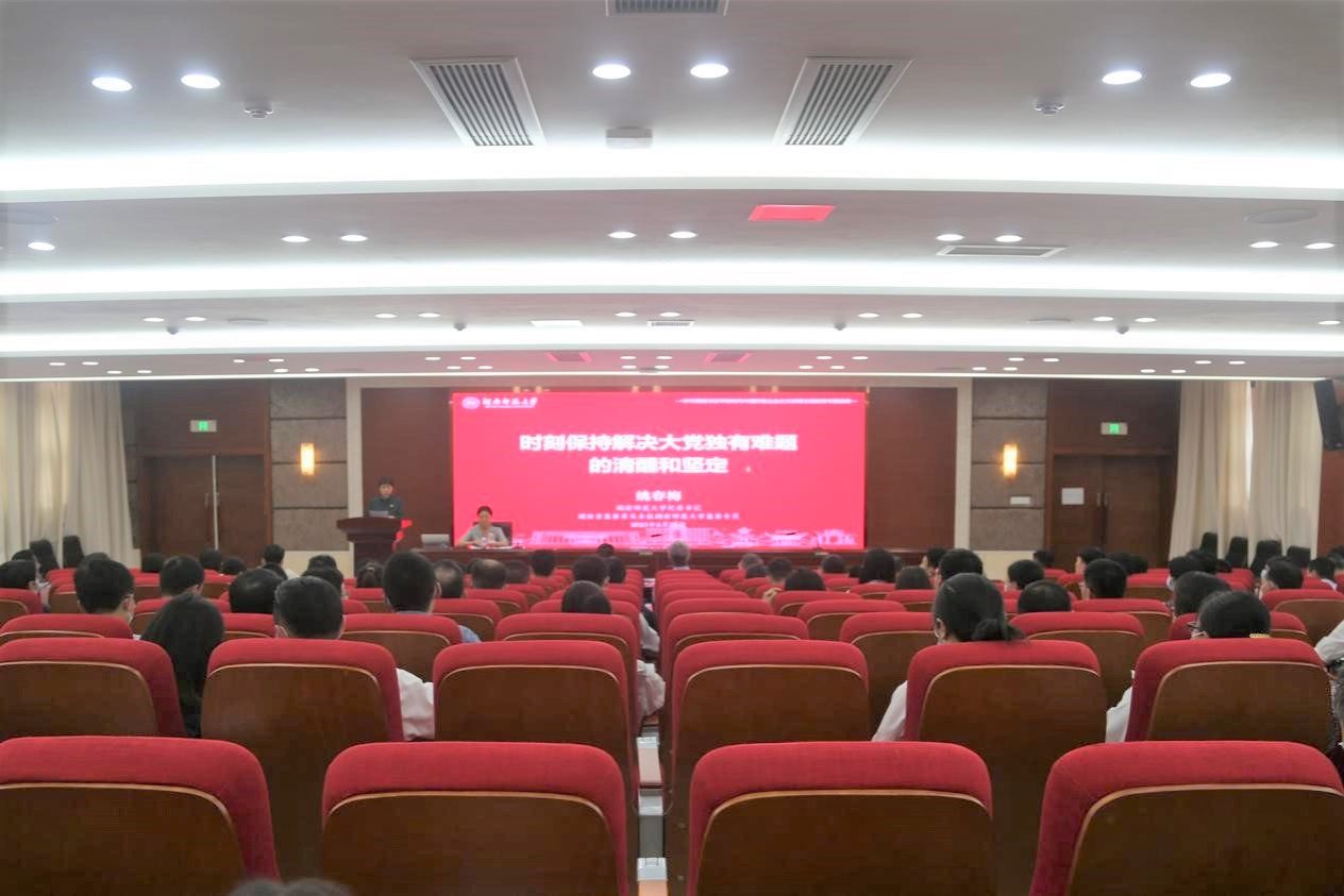 (记者 吴莎 罗嘉卿)5月25日下午,我校纪委书记姚春梅讲授了以“时刻保持解决大党独有难题的清醒和坚定”为主题的主题教育专题党课。