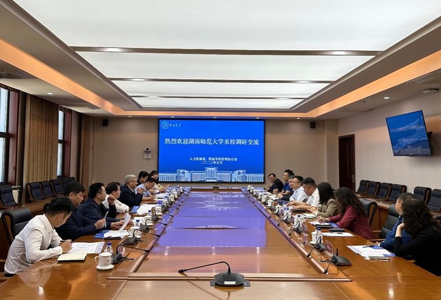 5月22日,调研团首先来到东北师范大学,东北师范大学副校长薛利锋及相关部门负责人出席座谈会,薛利锋对我校调研团的到来表示热烈欢迎,他指出,双方的办学理念与办学方式各有特色,应借此契机加强交流与合作。唐贤清对东北师范大学的热情接待表示感谢,他介绍了此行的主要目的,指出要学习东北师范大学基础教育的办学经验,借鉴东北师范大学在人事人才工作的优秀做法。会后,调研团一行与人事处相关同志进行了深入交流,参观了东北师范大学附属幼儿园、附属小学和附属中学,就办学规模、办学特色、管理模式等方面进行考察交流。