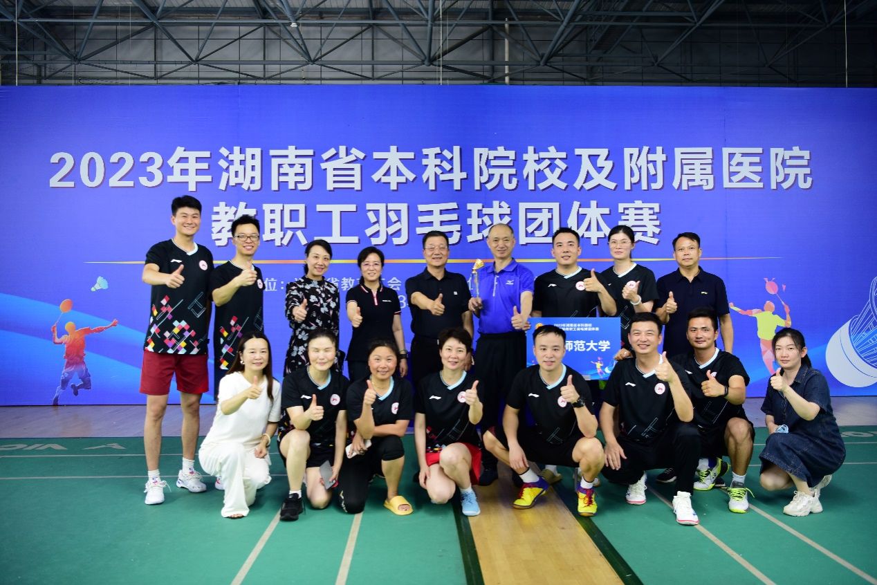 (供稿 校工会)5月30日至31日,由省教育工会主办的2023年湖南省本科院校及附属医院教职工羽毛球团体赛在湖南人民体育场举行。经过多轮激烈角逐,我校代表队荣膺冠军,实现了我校在该项赛事成绩的历史性突破。省总工会党组成员、省教育工会主席刘湘凌为我校代表队颁奖。