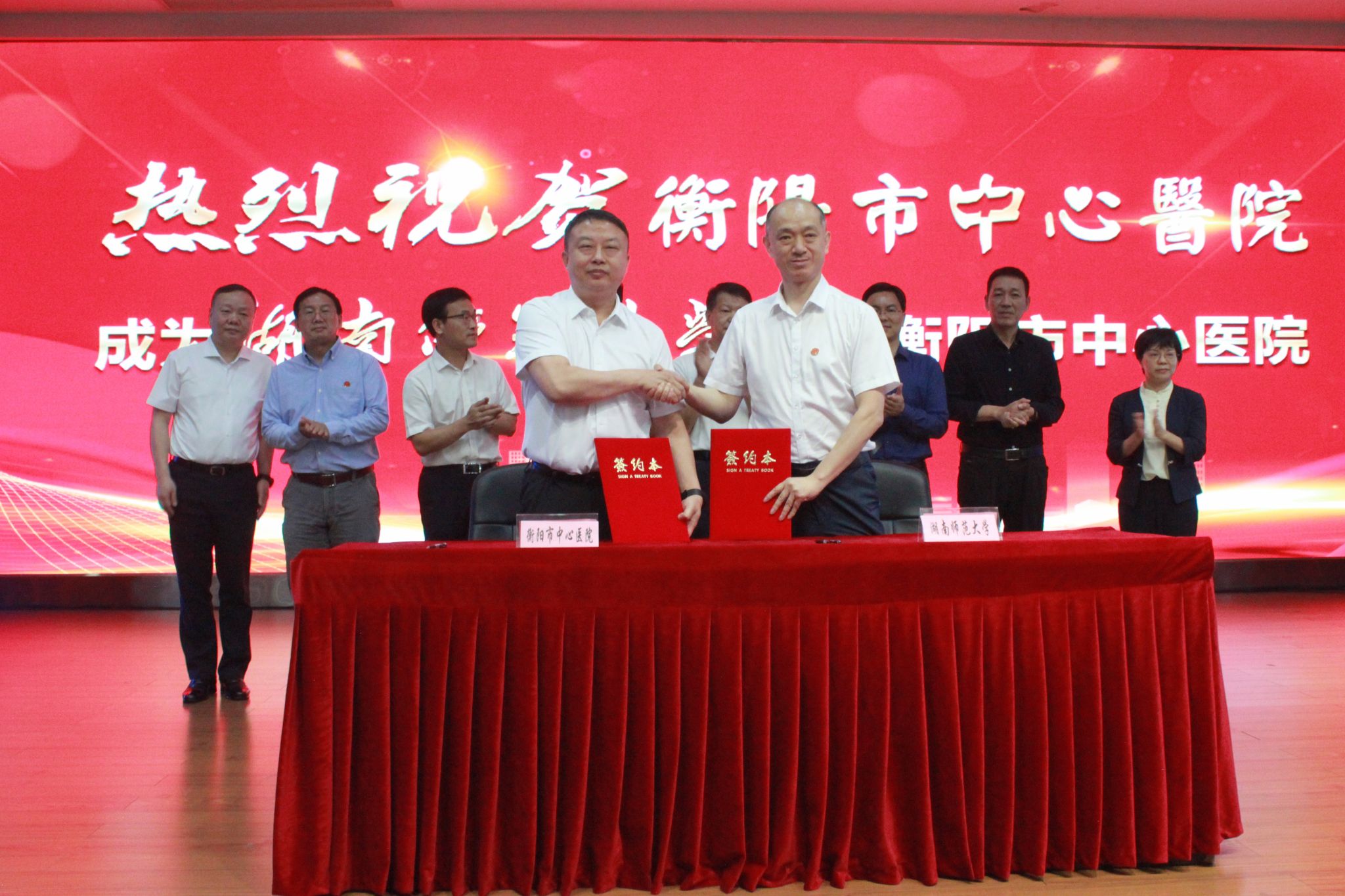 会上,杨震与尹军共同签署《华体会平台衡阳市中心医院战略合作框架协议》,杨震代表我校授牌,尹军代表衡阳市中心医院接牌。