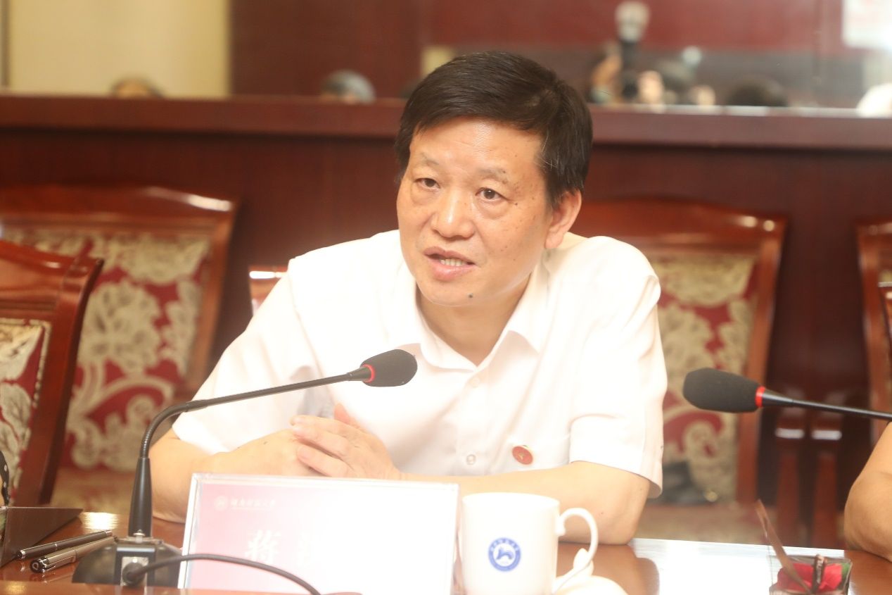 在调研会上,蒋洪新对省关工委一行人的到来表示热烈的欢迎,并对省关工委、省教育厅关工委一直以来的支持和重视表示感谢。他表示,近年来,学校高度重视关工委工作,认真贯彻落实中办、国办、省委省政府办公厅、教育部党组及省委教育工委华体会平台加强新时代关工委工作的文件精神,把推进品牌建设作为提高关工委工作质量的有效载体和重要手段。希望接下来继续做好关工委品牌创建、培育和提升工作,扎实推进关工委工作,助力学校“双一流”建设和人才培养。
