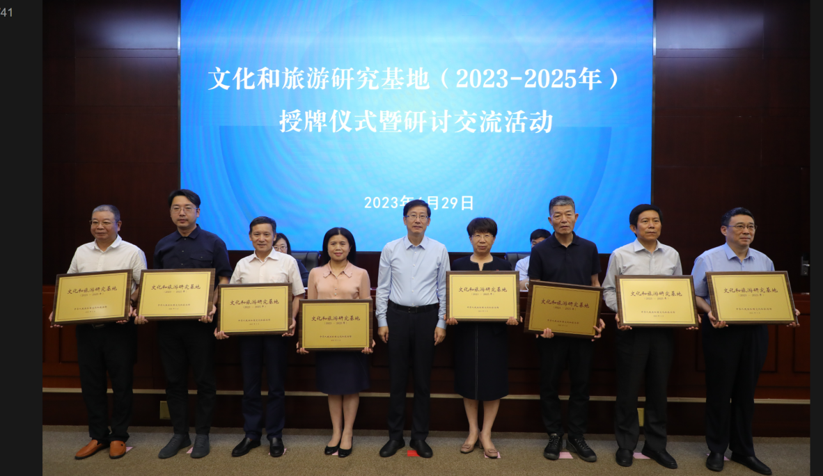 (供稿 法学院)6月29日,文化和旅游部举行文化和旅游研究基地(2023—2025年)授牌仪式暨研讨交流活动,文化和旅游部党组成员、副部长饶权出席活动,为新认定的40家文化和旅游研究基地授牌并讲话;我校党委副书记、文化和旅游研究院院长周俊武出席本次活动。