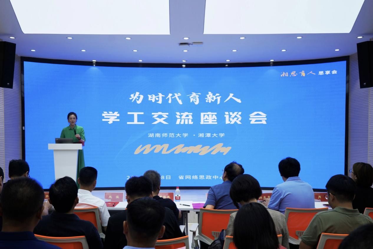 (供稿 学生工作部)7月8日下午,湘潭大学副校长刘建平一行来我校交流座谈,座谈会在励德楼省高校网络思政中心报告厅举行。我校党委副书记周俊武出席会议,会议由学生工作部(处)副部(处)长彭露主持。