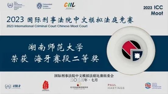 据国际刑事法院官网,2023年国际刑事法院中文模拟法庭比赛海牙赛段由荷兰莱顿大学格劳秀斯国际法律研究中心(the Grotius Centre for International Legal Studies–Leiden University)和国际律师协会(the International Bar Association)主办,也是国际刑事法院支持的中文、英文、法文和西班牙文版本的国际刑事法院模拟法庭比赛之一。晋级前三的队伍在国际刑事法院审判庭内争夺冠亚季军,最终,清华大学夺得冠军,华东政法大学夺得亚军,吉林大学夺得季军。