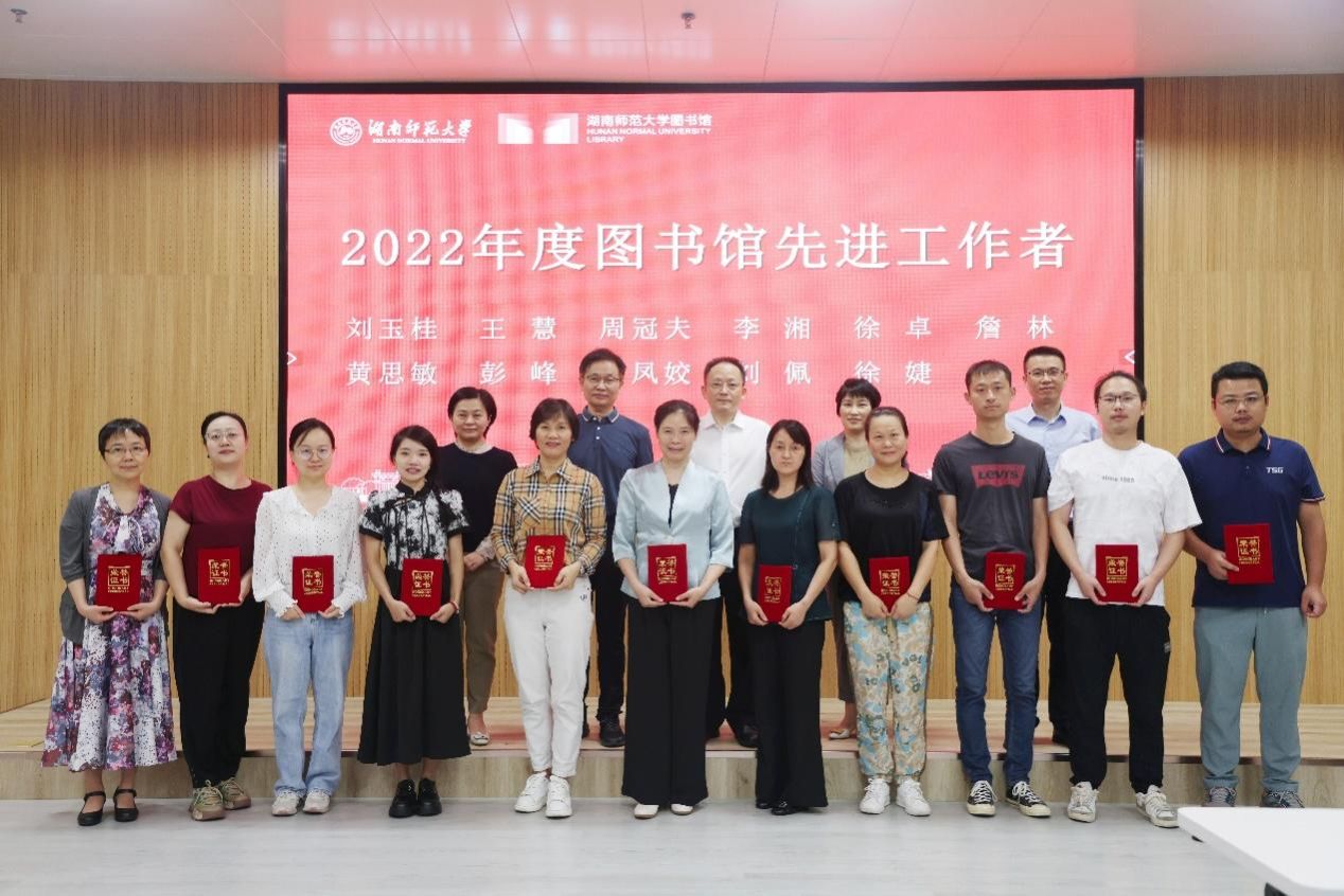 副馆长刘英宣读表彰决定,刘子兰和全体馆领导为2022年度图书馆服务明星、突出贡献团队、学校考核优秀个人、图书馆先进工作者、图书馆优秀共产党员颁奖。柳甜、肖凤娇作为获奖代表发言,她们回顾了自身的成长历程,感恩图书馆的领导和老师们的指导培养和关心帮助,并表示将以更大的热情投入到以后的工作。