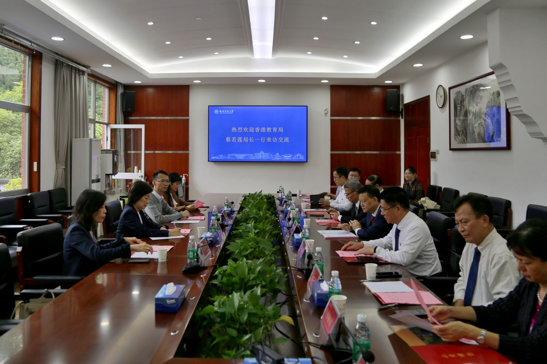 (记者 马铁泉 黄依依)9月22日下午,香港教育局局长蔡若莲一行赴我校调研交流,座谈会在校办二楼会议室举行。校党委书记蒋洪新出席会议,会议由副校长唐贤清主持。