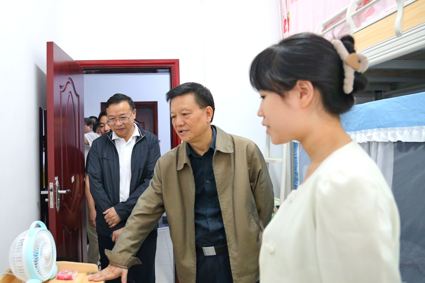 蒋洪新前往天马园区、南院校区和靳江学生公寓等地,了解校园安全建设和宿舍改造工作的落实情况。他深入学生宿舍,亲切慰问了学生,并送上节日祝福。他叮嘱学生,要提高对宿舍安全的认识,养成良好的生活习惯,加强自我管理和自我监督,保证身心健康,以积极饱满的精神状态投入到学习生活中去。