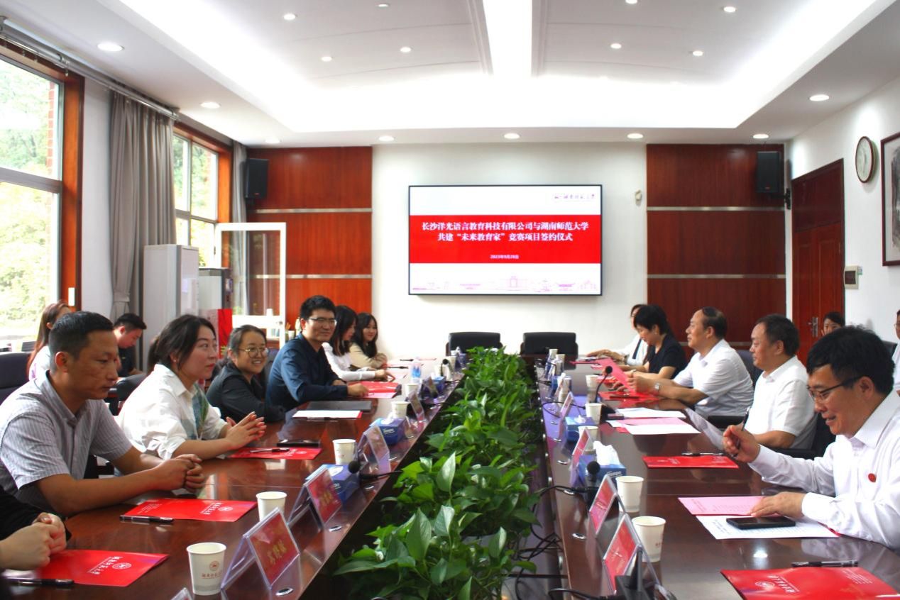 (通讯员 向思润 陆波涛)9月28日上午,长沙洋光语言教育科技有限公司与我校共建“未来教育家”竞赛项目签约仪式举行,公司董事长刘红平、我校副校长王辉出席。仪式由学生工作部部长向发意主持。