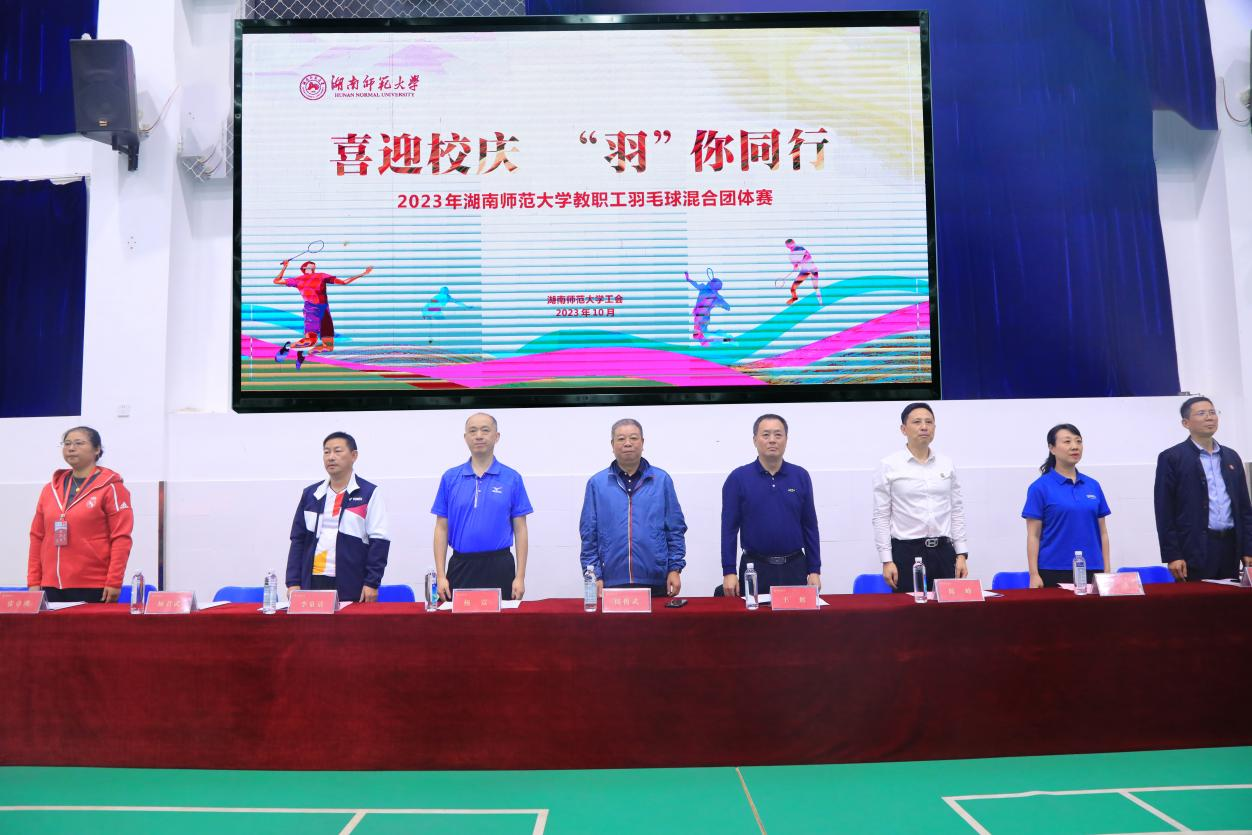 (记者 李睿 薛舒丹 李琳 罗嘉卿)10月13-15日,校工会在附中体育馆举行了全校教职工羽毛球混合团体赛。校党委副书记周俊武、副校长王辉、杨震出席开幕式,副校长蒋新苗、杨震参加比赛。本次赛事首次邀请广东校友代表队回母校交流。开幕式由校工会副主席杜汉文主持。