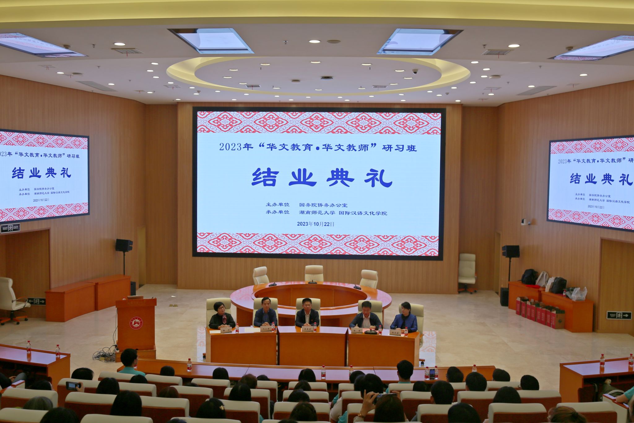 (通讯员 黄林键)10月22日上午,由国务院侨务办公室主办,我校承办的2023年“华文教育·华文教师”研习班结业典礼在我校图书馆报告厅举行。湖南省侨务办公室侨务事务处副处长冯小明,我校副校长唐贤清出席仪式。典礼由国际汉语文化学院副院长沈敏主持。