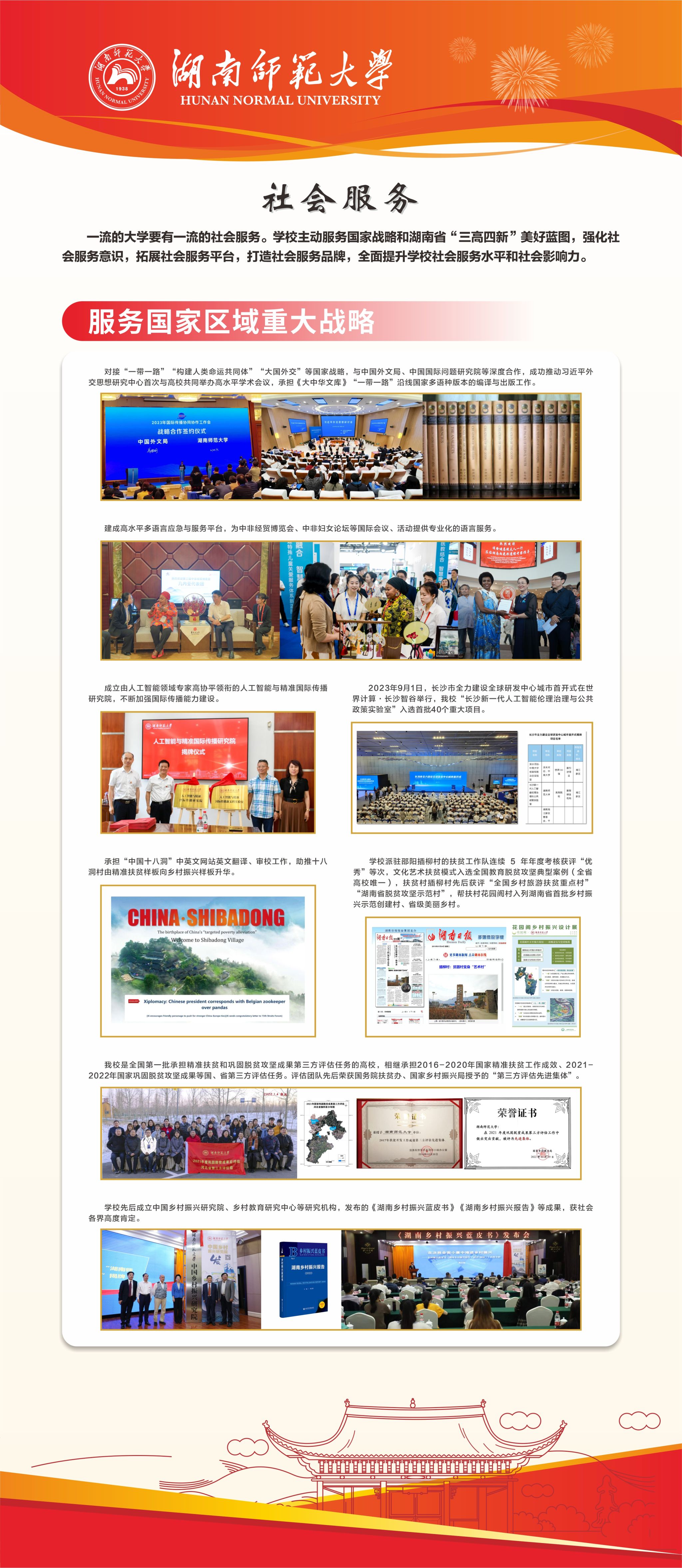 近年来,学校紧扣“中国特色、世界一流”,扎根中国大地、湖湘大地稳扎稳打,坚定落实立德树人根本任务,着力培养一流人才、产出一流成果、提供一流服务,迸发出强劲发展动能。党建工作达到新高度,学科发展获得新突破,育人质量迈入新层次,人才梯队实现新跨越,科学研究跨上新台阶,社会服务展开新气象,对外开放呈现新格局,文化建设形成新品质,环境建设达到新水平,学校综合实力与核心竞争力明显增强,社会声望和影响力显著提升,迈入到进步最快、发展最好的新的历史阶段。