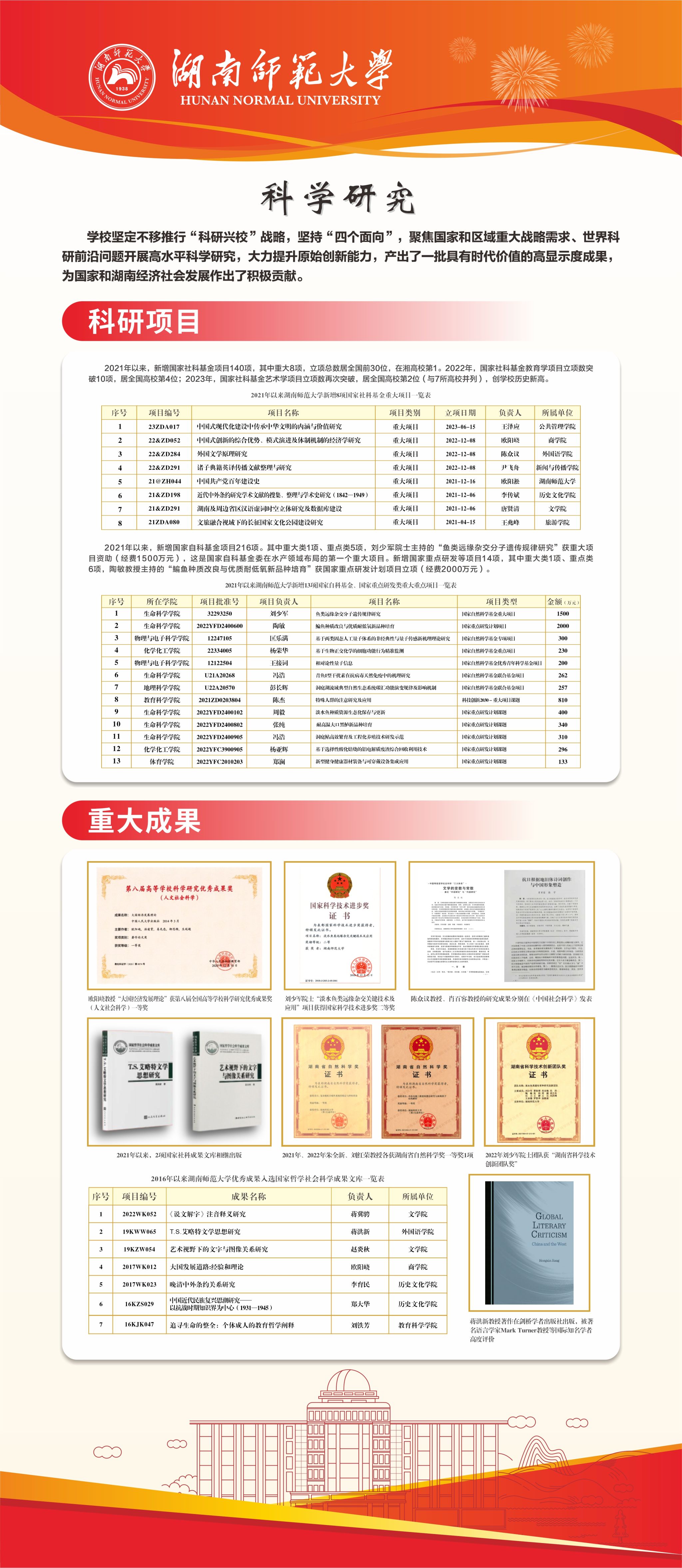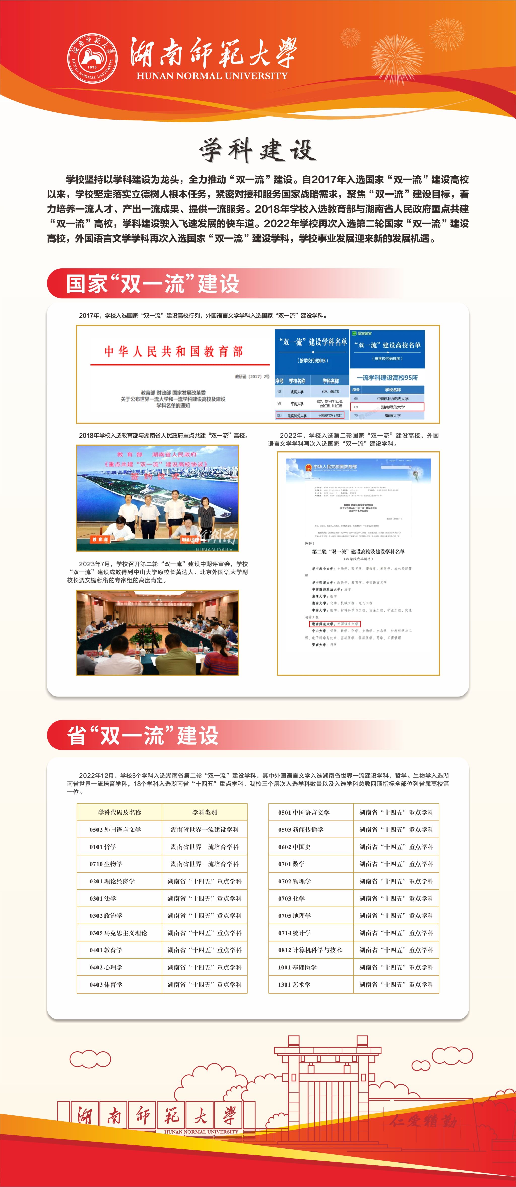 2017年,华体会平台入选国家“双一流”建设高校行列,2018年入选教育部与湖南省人民政府重点共建“双一流”高校,2022年入选第二轮“双一流”建设高校。