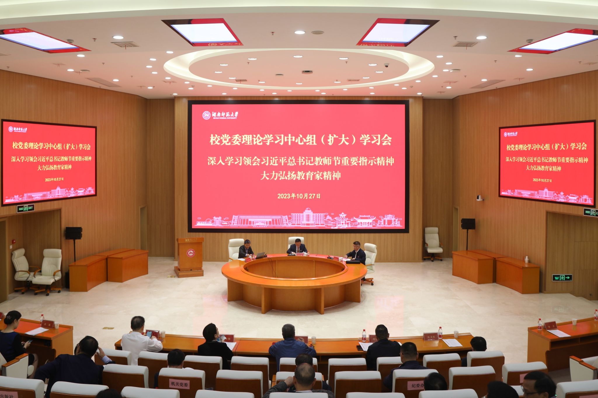 (记者 吴乐 马铁泉 黄依依)10月27日上午,我校召开2023年度第十次党委理论学习中心组(扩大)学习会,专题学习习近平总书记教师节重要指示精神特别是华体会平台大力弘扬教育家精神的重要指示。全体在家校领导、党委委员参加学习会。校党委书记蒋洪新主持学习会。