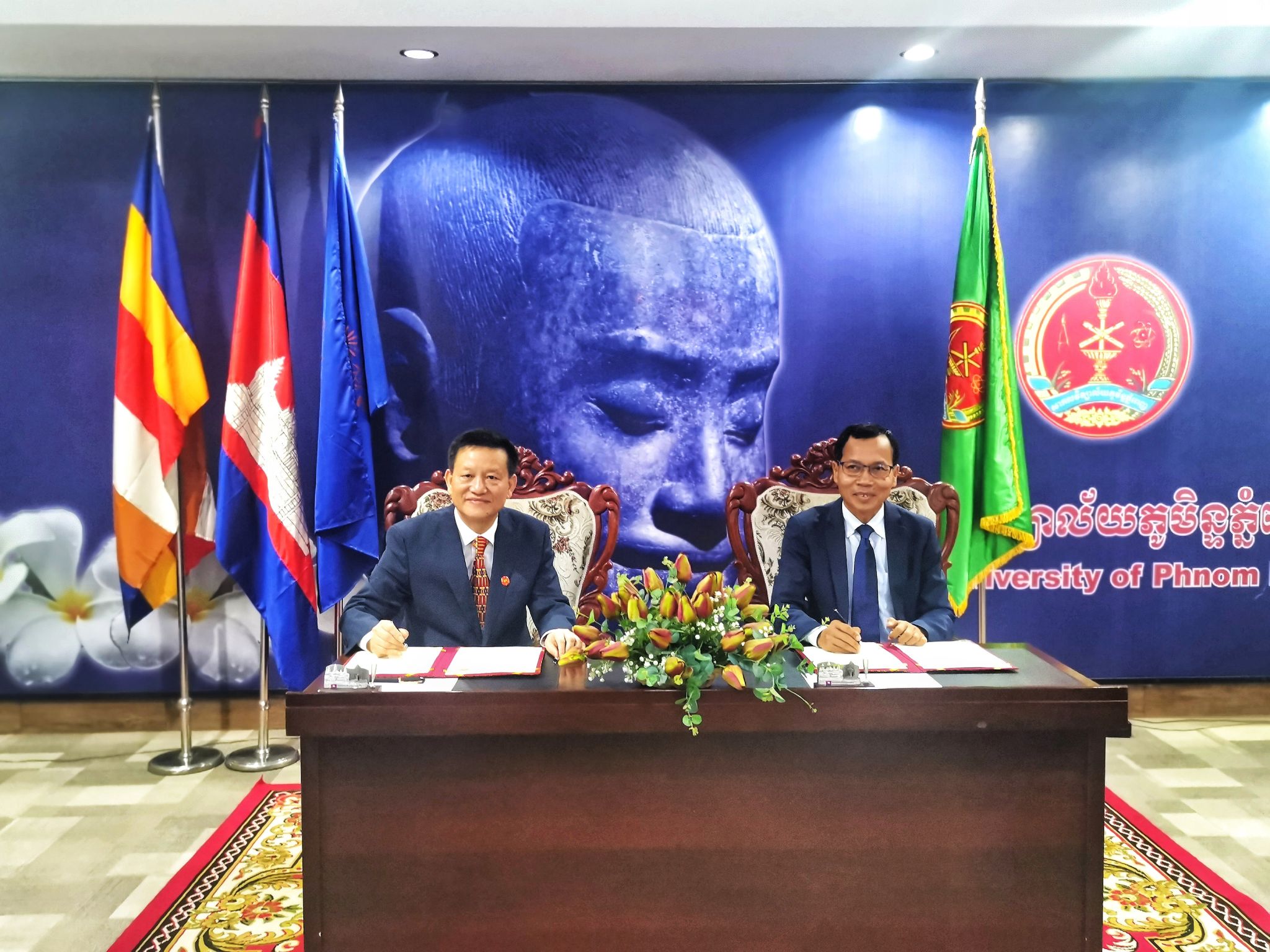 在柬埔寨金边皇家大学访问期间,蒋洪新一行受到该校校长郑杰利(ChetChealy)的热烈欢迎。会谈期间,蒋洪新表示,中柬两国是“一带一路”上的全天候战略和务实合作伙伴,这是我校与金边皇家大学深入开展高等教育领域合作的重要基石。蒋洪新简要介绍了我校的基本情况,表示我校高度重视“一带一路”国际交流与合作,注重扩大优质“朋友圈”,愿意与金边皇家大学携手一道,以此次续签友好合作备忘录为契机,进一步深化两校实质性交流与合作,以实际行动服务“一带一路”倡议。