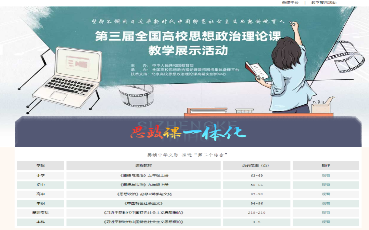 作为教育部大中小学思政课一体化共同体(湖南)的牵头单位,我校马克思主义学院与长沙市芙蓉区育英西垅小学、韶山市韶山中学、华体会平台附属中学、长沙县职业中专、湖南交通职业技术学院等共同体成员单位通力合作,认真梳理大中小学思政课统编教材中一以贯之的重点内容,深入研究各学段育人目标、教学理念的一致性和内容衔接的科学性,以“赓续中华文脉 推进‘第二个结合’”为主题,精心开发了针对小学、初中、高中、中职、高职专科、本科学生的“同题异构”一体化示范教学资源。