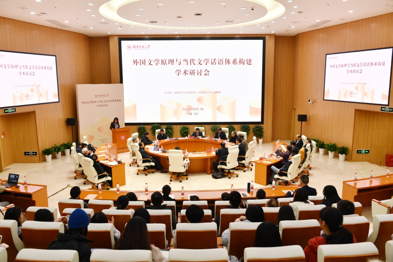 (通讯员 吴晋先)12月2日,由《外国语言与文化》编辑部和我校外国语学院共同主办的“外国文学原理与当代文学话语体系构建学术研讨会”在图书馆报告厅举行。校党委书记、欧洲科学院院士蒋洪新,中国社会科学院学部委员、我校潇湘学者特聘教授陈众议出席会议。会议开幕式由我校外国语学院院长曾艳钰主持。