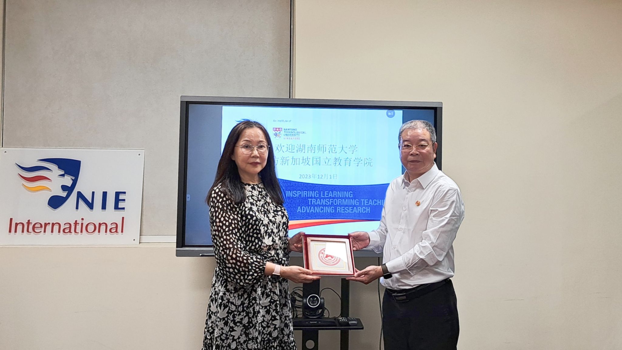 在新加坡南洋理工大学国立教育学院访问期间,周俊武与中国事务主任孔丽娟进行了工作座谈,他回顾了两校合作交流历史,以及未来合作愿景。孔丽娟介绍了南洋理工大学国立教育学院的相关情况。她表示,希望在巩固两校现有合作成果的基础上,进一步深化友好合作。随后,双方就开展人员培训、科研合作、学生短期交流等议题进行了深入交流,达成了一致意见,续签了两校合作备忘录。