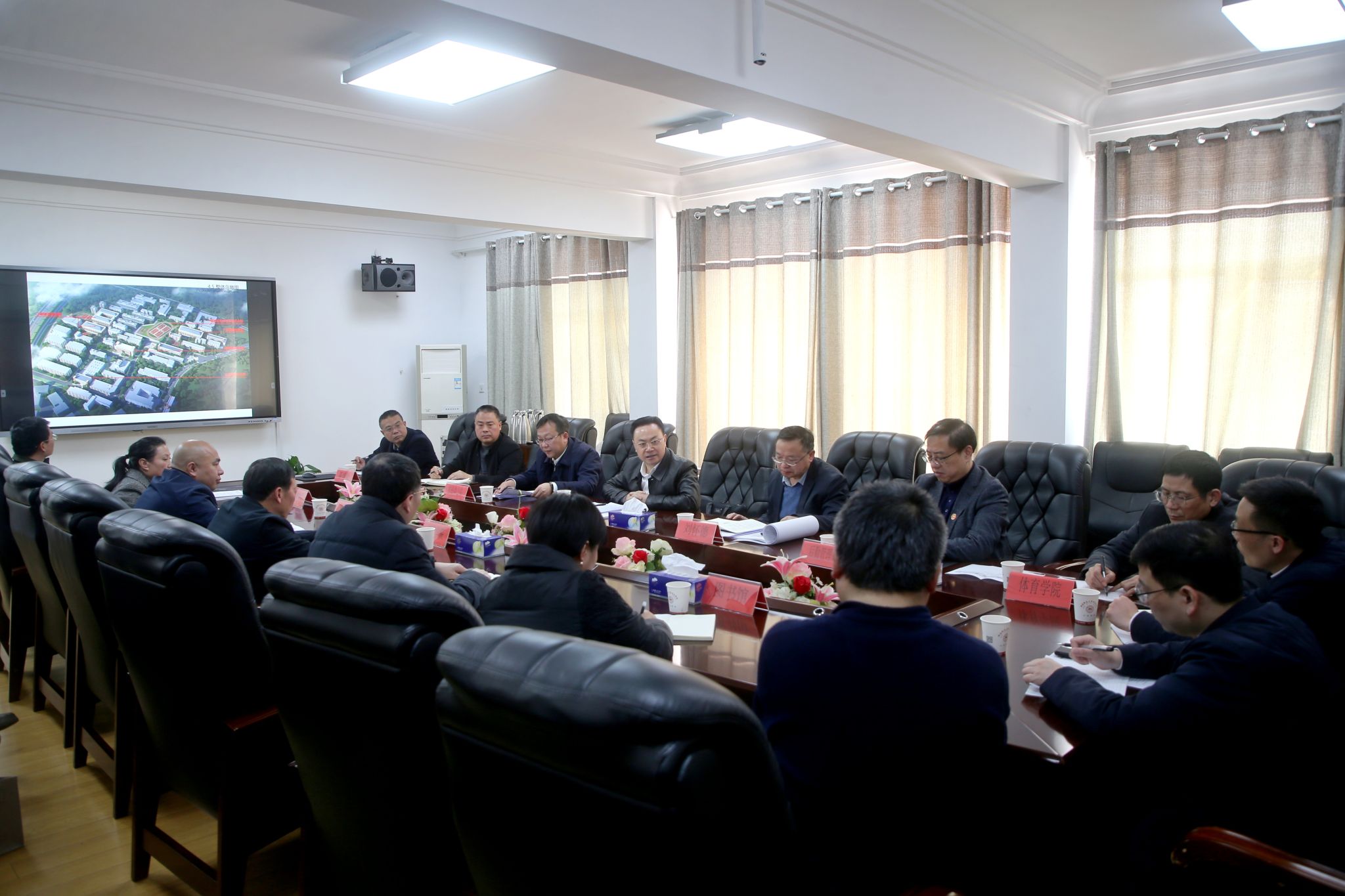 房地产管理处、树达学院、基建处、教务处、后勤管理处、资产与实验室管理处、图书馆、体育学院、研究生院、财务处等部门负责人分别汇报了工作开展情况、面临的困难问题和下一步的工作规划。