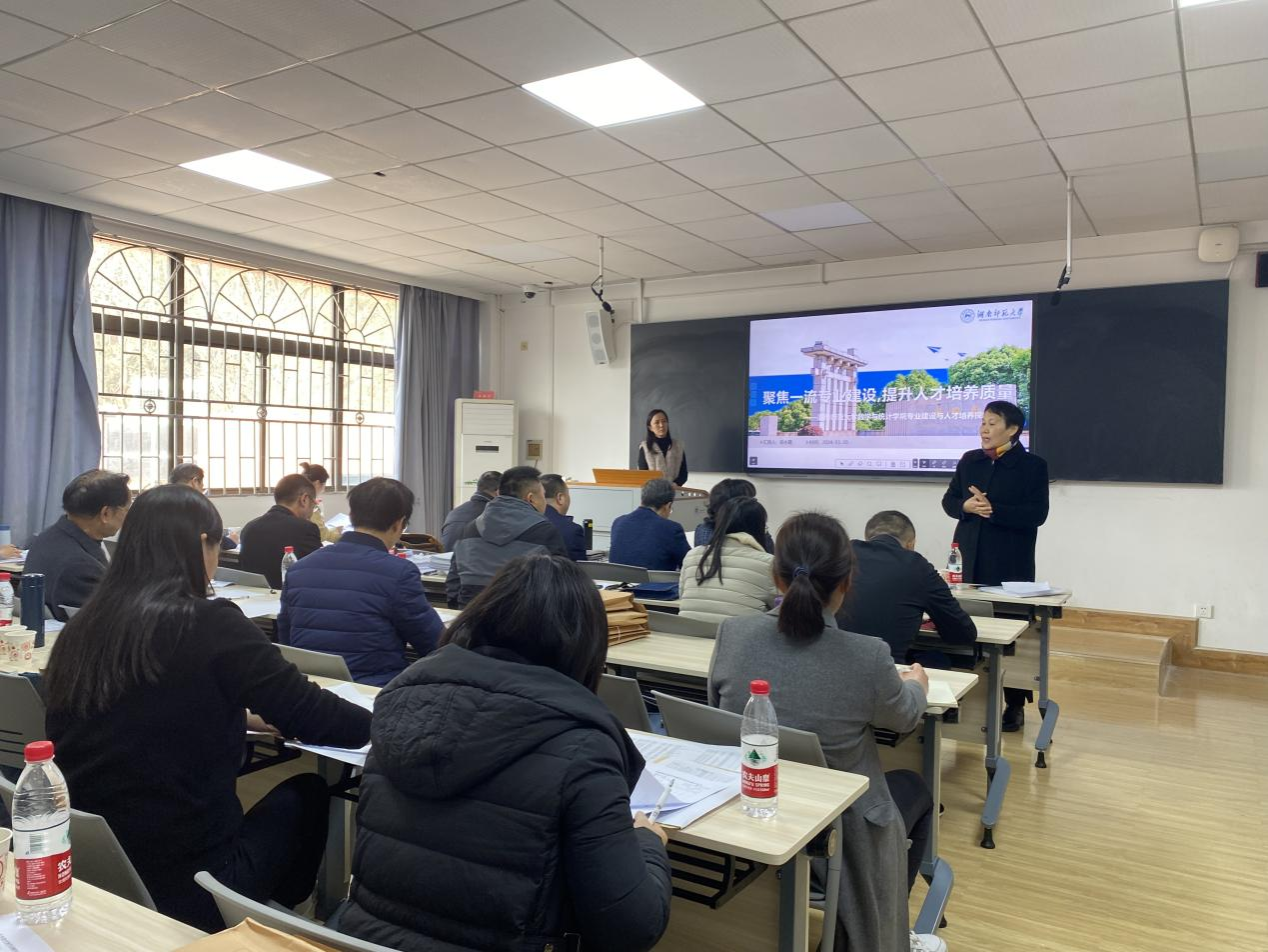 考察第一阶段,各学院院长结合前期自评自建推进情况,从学院人才培养举措与成效、特色与优势、自评自建成效、现存问题与改进措施等方面进行汇报。专家组根据汇报情况进行质询与指导。