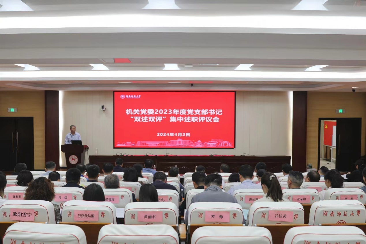 (记者 张尧钰 凤馨)4月2日上午,机关党委2023年度党支部书记“双述双评”集中述职评议会在中和讲堂举行。校党委副书记、机关党委书记周俊武出席会议。会议由机关党委副书记(主持日常工作)张明主持。