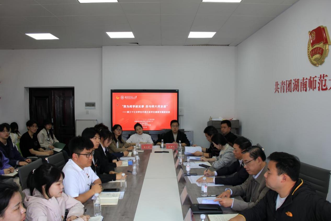 (通讯员 张瑞恩 伍佳彤 张榕儒)近日,校团委、校学生会联合后勤管理处于励德楼团委会议室举行我校“我为同学做实事 我与师大同发展”第三十七次学生代表大会学生提案专题座谈会,副校长王辉出席座谈会。校团委副书记胡滢主持会议。
