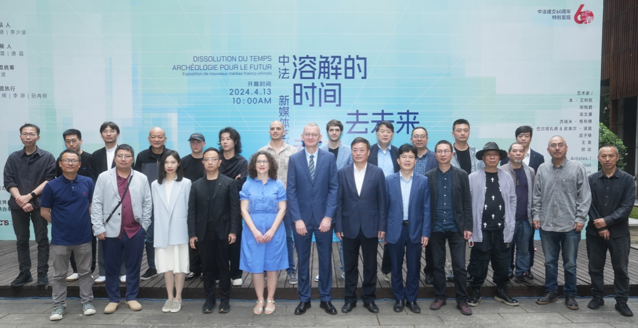 (供稿 美术学院)4月13日上午,“溶解的时间:去未来考古——中法新媒体艺术展”在美仑美术馆开幕。法国驻武汉总领事馆副总领事罗冉,我校副校长王辉,湖南美术出版社副社长文波出席并发表讲话。