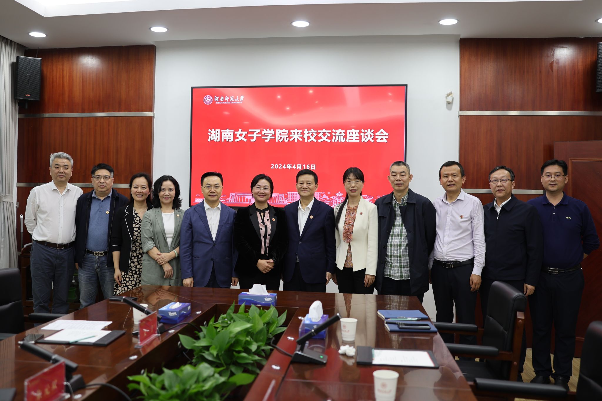 (记者 陈丽荣 黄依依 李欣茹)4月16日上午,湖南女子学院党委书记段美娟、校长何旭娟、副校长石潇纯一行来校交流,座谈会在校办公楼二会议室举行。我校党委书记、欧洲科学院院士蒋洪新,校长、中共第二十届中央候补委员、中国工程院院士刘仲华,副校长蒋新苗出席会议。