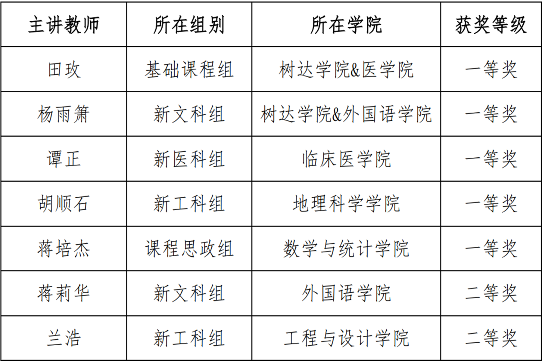 附:第四届湖南省普通高校教师教学创新大赛获奖名单