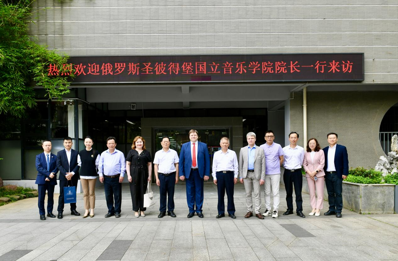 (记者 肖漪 张婧茹)5月10日,俄罗斯圣彼得堡国立音乐学院校长阿列克谢·瓦西里耶一行来我校访问交流、洽谈合作,座谈会在音乐学院德乐楼会议室举行。俄罗斯圣彼得堡国立音乐学院常务副校长丹尼斯·比斯特洛夫、外事副校长列金娜·格拉组诺娃,我校副校长唐贤清出席会议,会议由我校国际交流合作处处长陈云江主持。