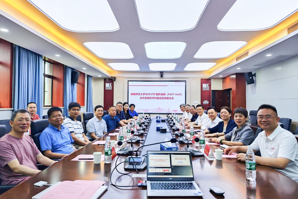 湖南省科技厅FAST湖南工作专班干部、我校发展规划与学科建设处等职能部门、物理与电子科学学院负责人等参加座谈会。