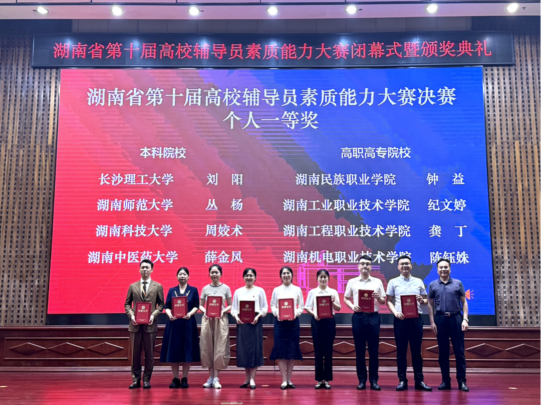 (通讯员 范增)5月30日至31日,湖南省第十届高校辅导员素质能力大赛决赛在湖南工程学院举行。我校文学院辅导员丛杨在比赛中脱颖而出,以优异的表现荣获本科院校组一等奖。