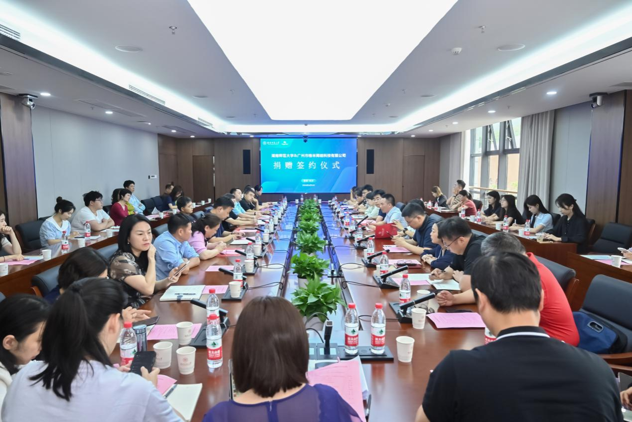 (通讯员 卢健 李亚莉 刘佳怡)6月3日下午,广州格米科技有限公司捐赠签约仪式在我校三棵树广场教学实验楼四楼会议室举行。我校2002届教育科学学院校友、广州格米科技有限公司董事长郭永兴,我校副校长王辉出席签约仪式。捐赠仪式由我校学生工作部(处)、武装部部长鲁良主持。