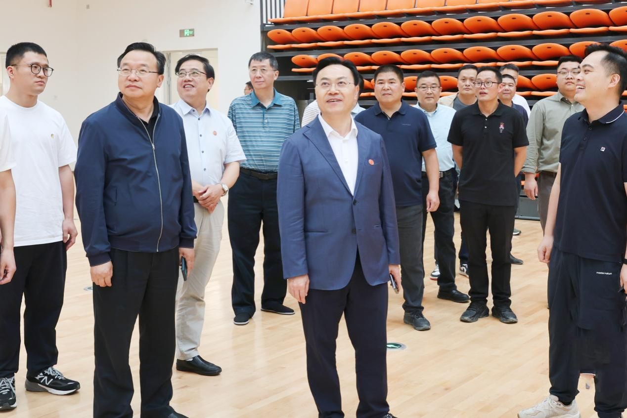 会前,刘仲华、刘怀德一行实地考察了学校江湾体育馆的基础设施建设情况,对各项工作推进情况表示肯定,对全体为之付出辛苦的工作人员表示感谢。