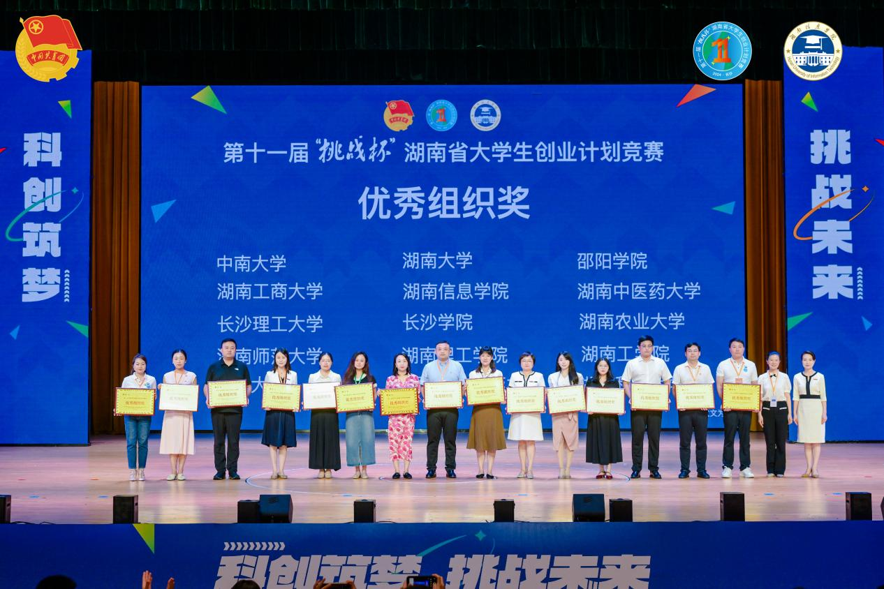 (供稿 校团委)6月21日至24日,第十一届“挑战杯”湖南省大学生创业计划竞赛在湖南信息学院举行。我校荣获金奖3项、银奖2项、铜奖8项,获团体优胜杯、优秀组织奖。
