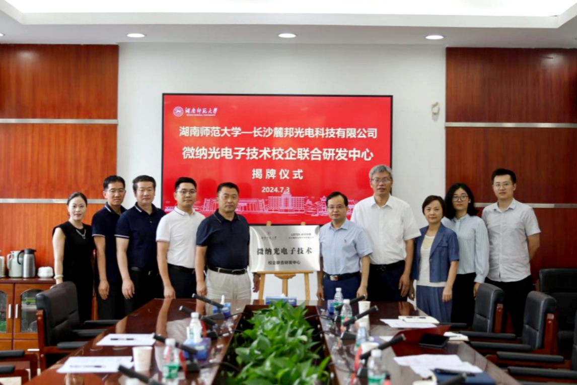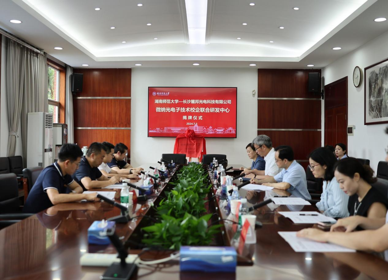 (记者 谭佳 张婧茹)7月3日上午,我校与长沙麓邦光电科技有限公司共建的微纳光电子技术校企联合研发中心揭牌仪式在校办二会议室举行。长沙麓邦光电科技有限公司总经理李晓春、我校副校长潘安练出席并讲话,会议由科技处处长唐东升主持。
