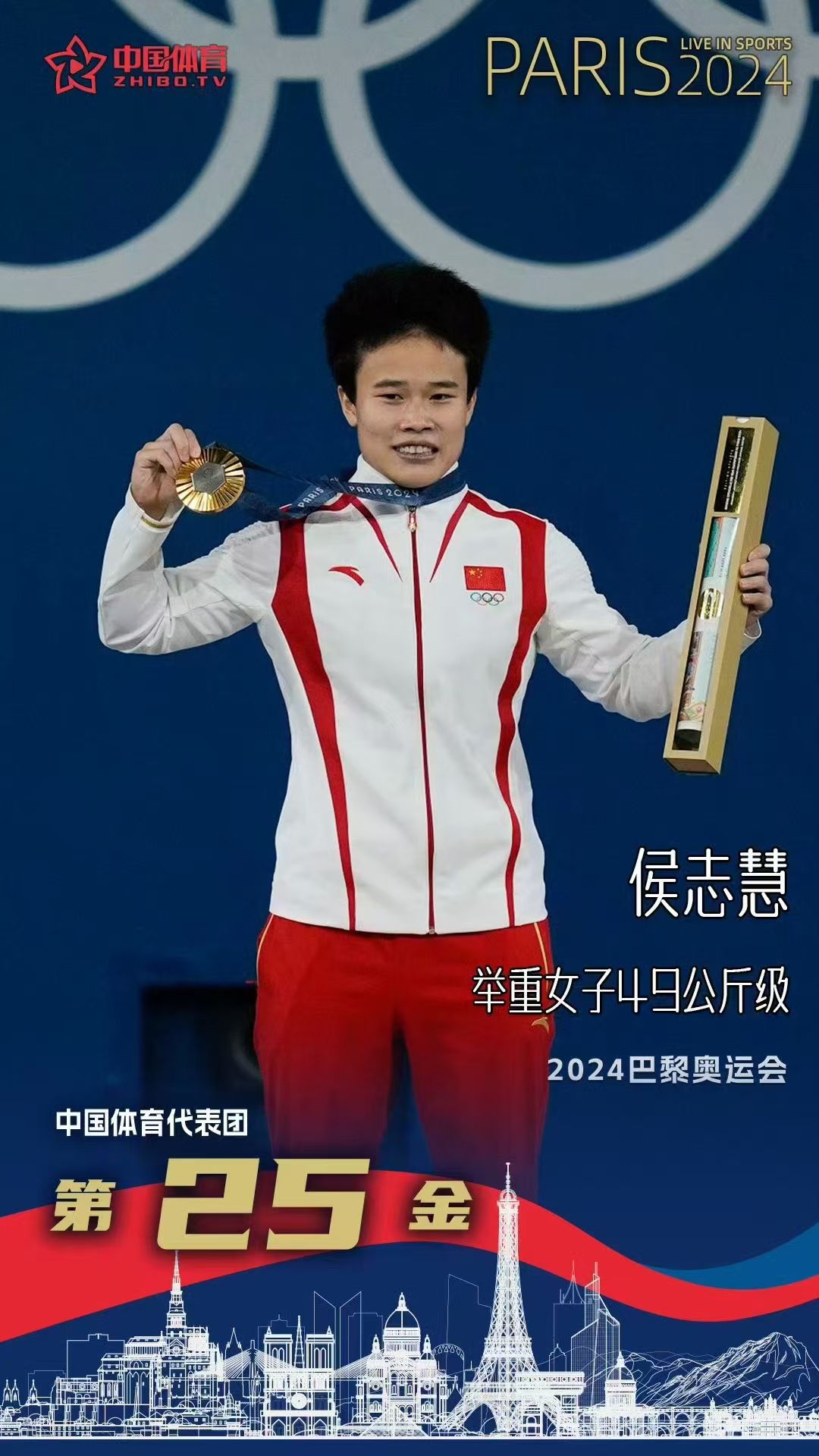 (供稿 体育学院)8月8日凌晨,我校体育学院2017级运动训练专业学生侯志慧在巴黎奥运会女子49公斤级举重比赛中以抓举89公斤、挺举117公斤,总成绩206公斤获得金牌。