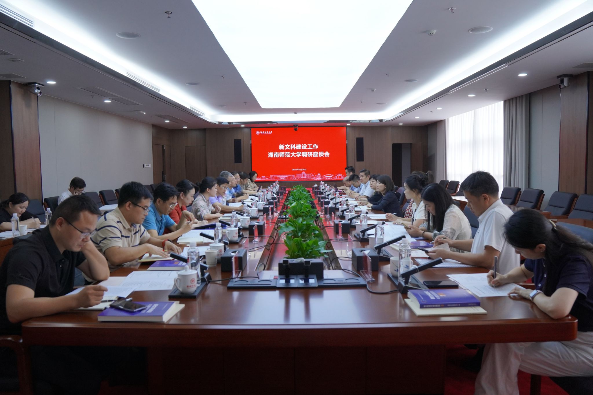 全国新文科建设工作调研组成员、湖南省部分高校代表、我校相关职能部门和学院代表参加会议。