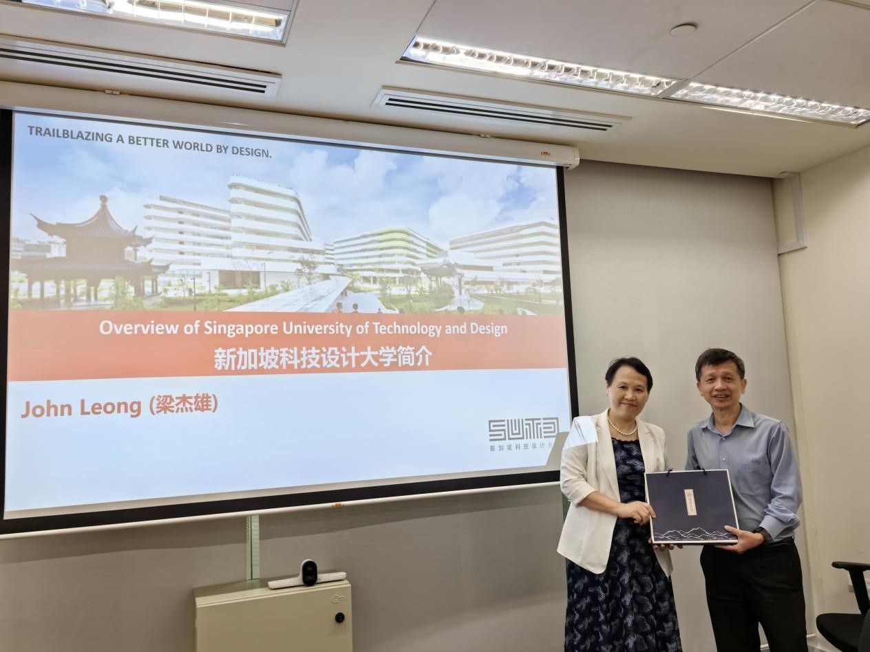 在新加坡科技设计大学访问期间,谢资清与该校研究生院院长梁杰雄进行了工作座谈。梁杰雄简要介绍了科技设计大学办学情况和交叉学科人才培养特色。谢资清简要介绍了我校办学历史及近年来在学科交叉融合方面开展的探索。双方亲切交流,并互赠礼品。