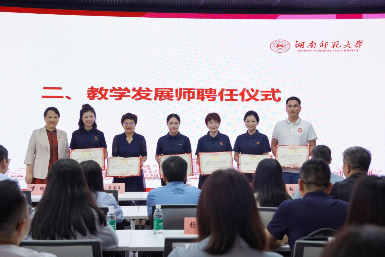活动举行了教学发展师的聘任仪式、青年教师与教学导师签约仪式。由谢资清为6名教学发展师代表颁发了聘书。16对教学导师与新入职的青年教师代表在协议上双方签字确认后合影留念。
