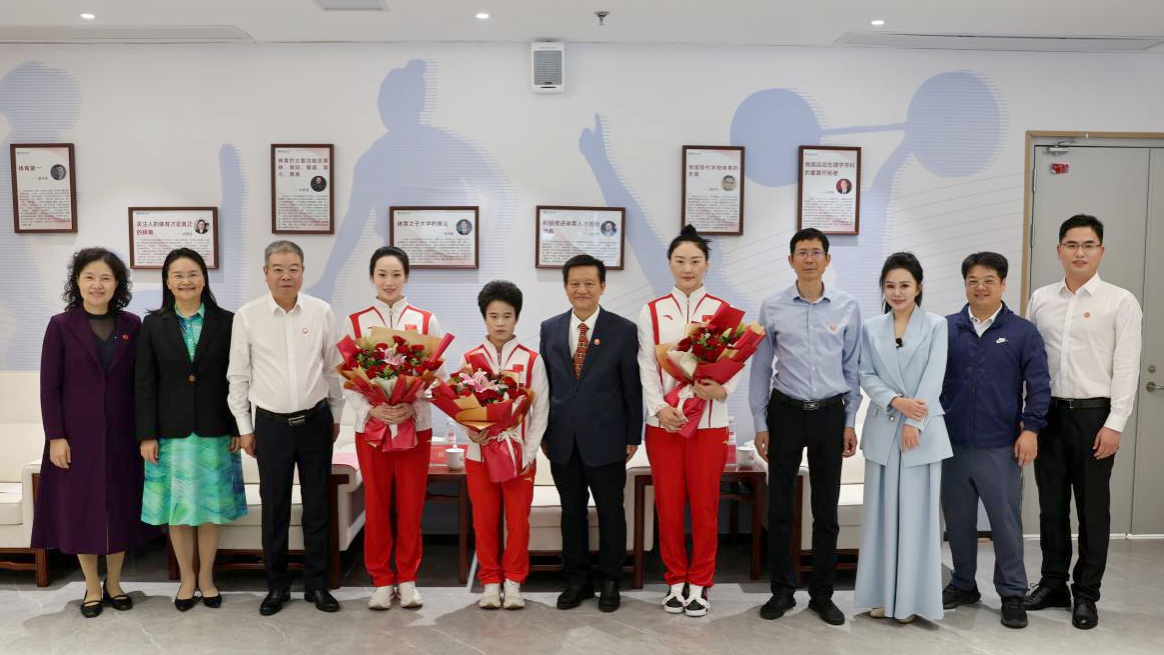 蒋洪新对运动员们的到来表示热烈的欢迎。他由衷祝贺运动员们在本届巴黎奥运会取得的傲人成绩,并表示,她们生动展现了我校体育健儿的坚韧品质和精湛的竞技水平,充分诠释了我校学子的精神风貌和青春风采,学校以她们为荣。同时,他希望运动员们未来能激励更多的学生追求卓越、奋勇前行,促进我校高质量推进体育人才创新培养,为国家培养更多学习成绩优异、运动成绩突出、综合能力强大的学生运动员。