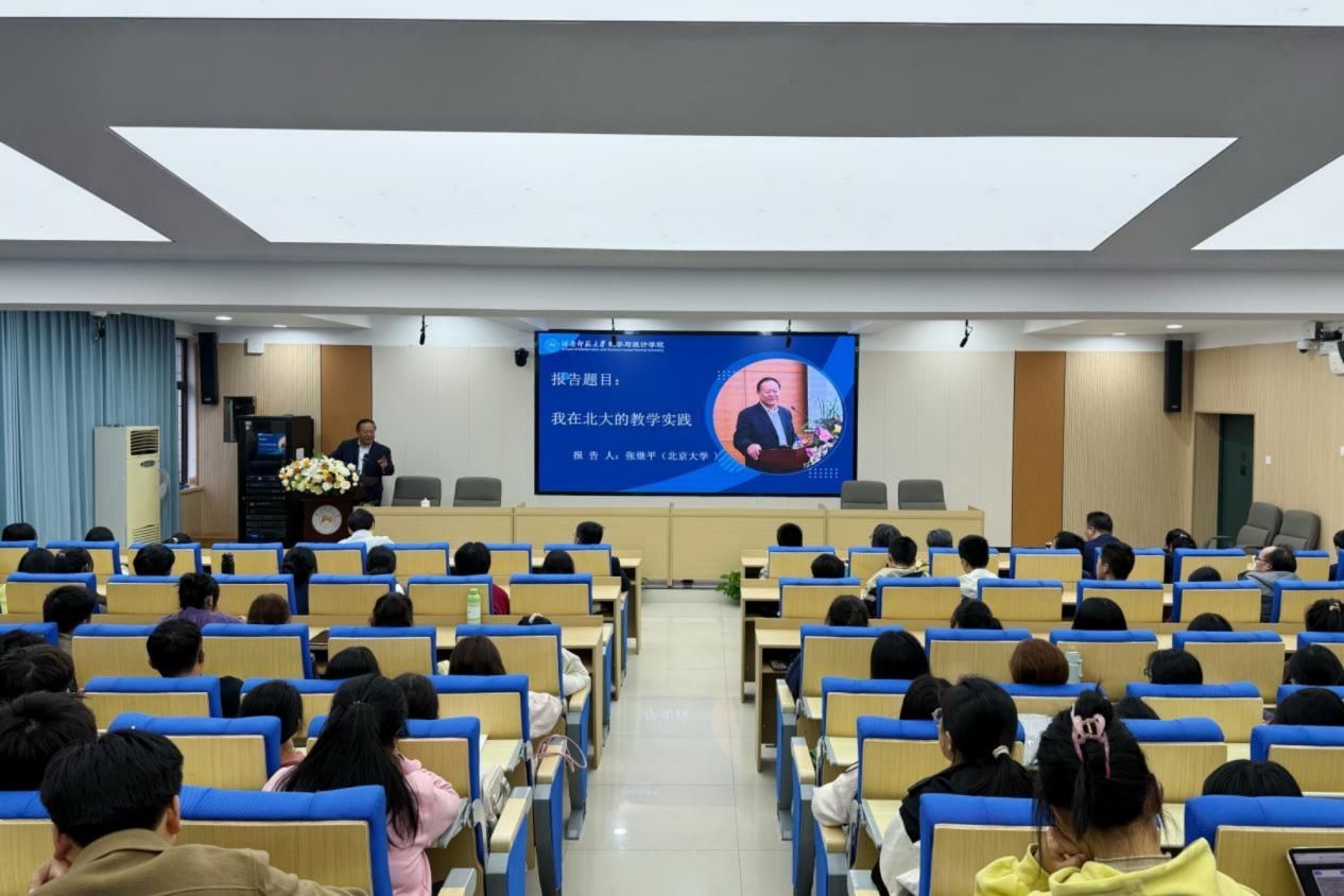 (通讯员 田乐之 余瑾瑜 胡曼诗)10月28日下午,中国科学院院士、北京大学数学科学学院教授张继平为我校数学与统计学院作了题为《我在北大的教学实践》的学术讲座。我校副校长谢资清出席讲座,数学与统计学院院长李利平主持讲座。