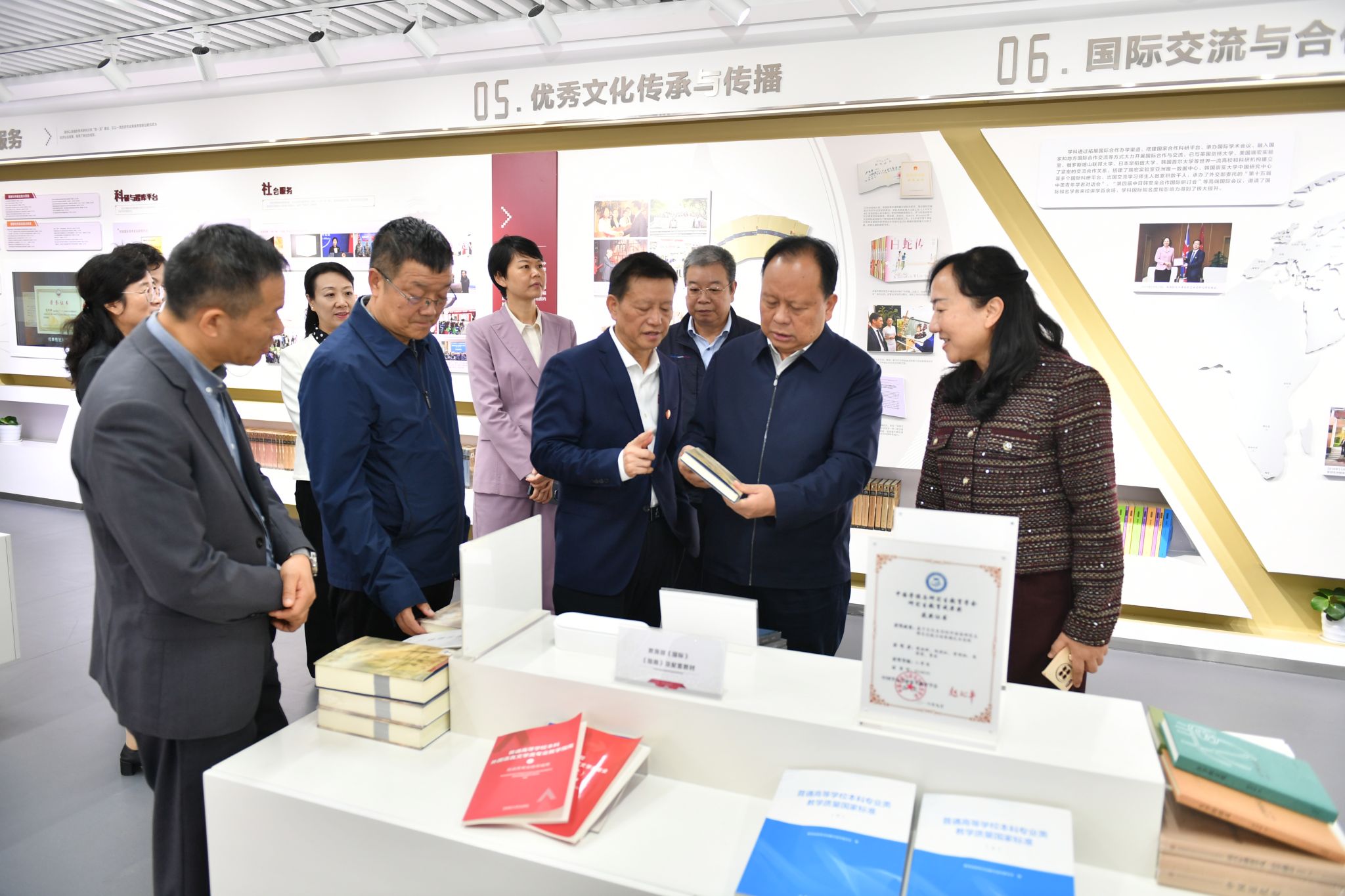 周农实地考察了物理与电子科学学院量子生物实验室、量子精密测量与传感实验室等科研平台和劳模创新工作室,详细了解了科技创新、成果转化以及劳模创新示范引领作用发挥情况。随后,他走进外国语学院乡村外语教育工作室、虚拟仿真实验室、教职工小家调研,并参观世界一流建设学科展览厅和天文馆,认真听取一流学科建设、科普教育和工会工作情况介绍。