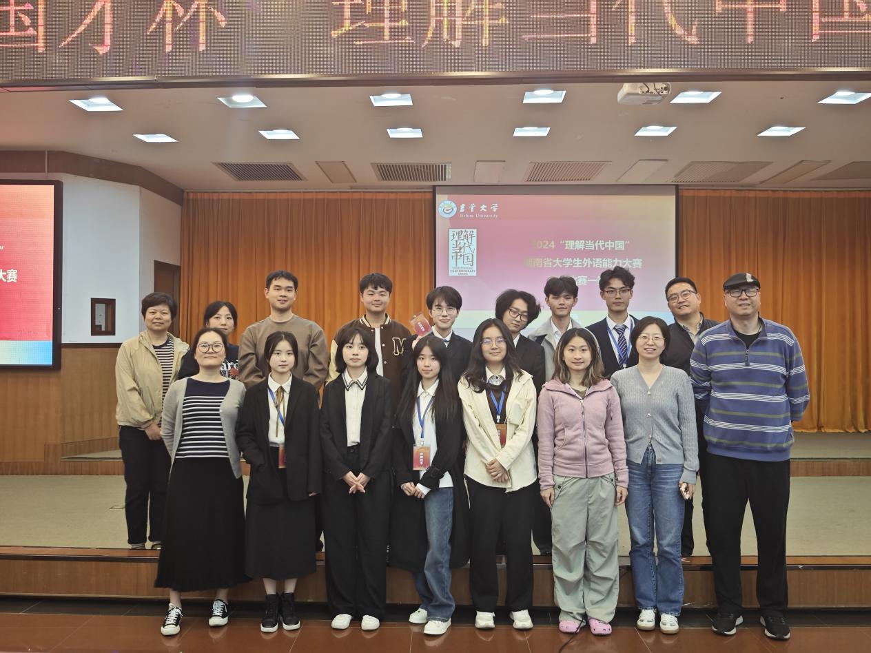 (通讯员 罗坚 韩毅传)11月1日至3日,由湖南省教育厅主办的“2024年外研社·国才杯‘理解当代中国’湖南省大学生英语能力大赛”在吉首大学举行。我校代表队共参加四个赛项的比赛,荣获大赛团体金奖。