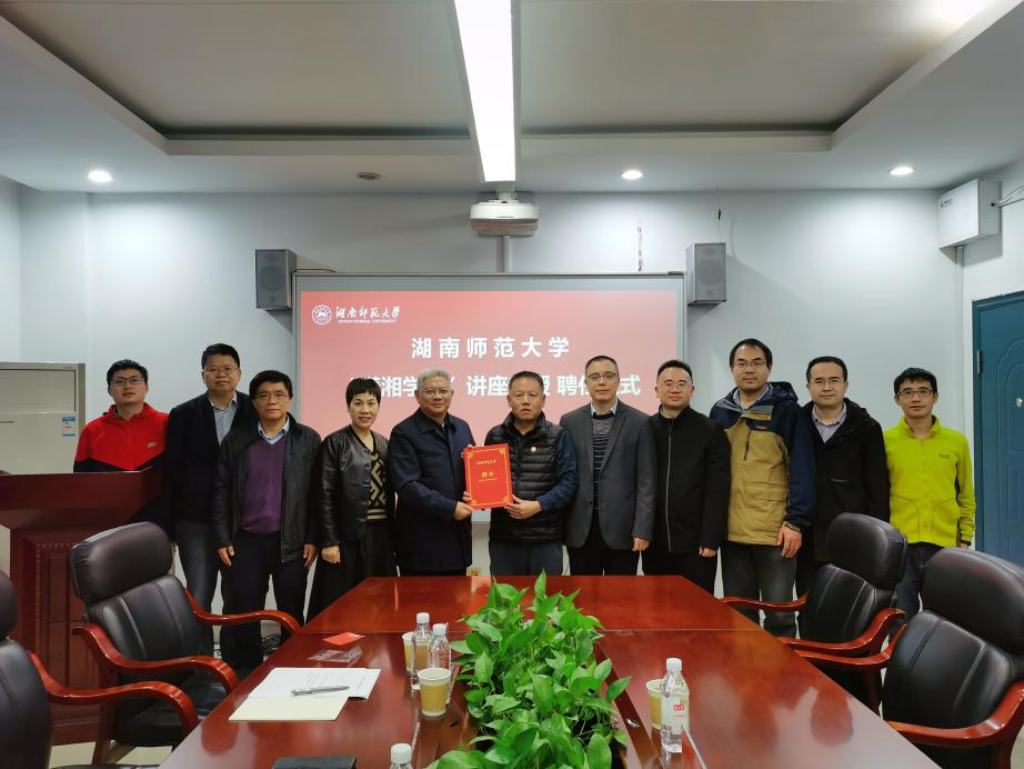 (供稿 物理与电子科学学院)11月19日下午,我校在量子楼会议室举行“潇湘学者”受聘仪式,聘任彭勃为“潇湘学者”讲座教授。副校长唐贤清出席仪式。仪式由物理与电子科学学院党委书记罗嵘主持。