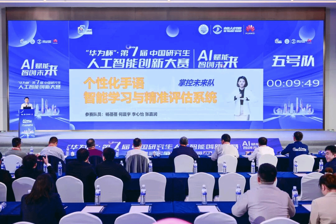 (供稿 工程与设计学院)近日,由教育部学位管理与研究生教育司指导,中国学位与研究生教育学会、中国科协青少年科技中心主办的“华为杯”第七届中国研究生人工智能创新大赛在山东青岛举行,主题为“AI赋能,智创未来”。我校工程与设计学院杨蓓蓓、何晨宇、李心怡、张嘉润等4名研究生的参赛作品“个性化智能手语学习与精准评估系统”入围全国十五强、斩获一等奖,指导老师卢笑、曹意宏获优秀指导教师奖。