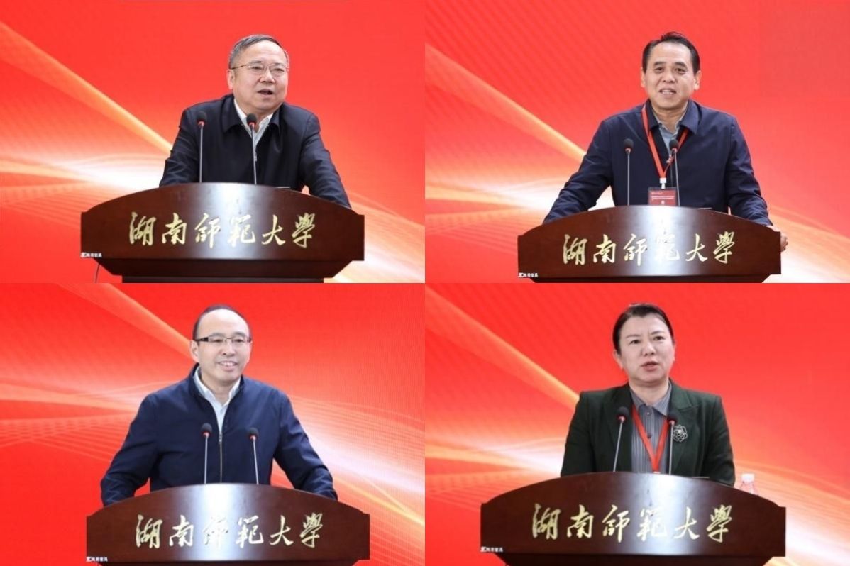 湖南省政协副主席李民,南京大学原党委书记、文科资深教授洪银兴,南开大学原副校长、全国教书育人楷模逄锦聚,华中师范大学政治学部部长、文科资深教授徐勇,湖南省社科院(省政府发展研究中心)院长禹向群,省委党史研究院院长刘启峰,省地方志编纂院院长汤建军,省教育厅副厅长兰勇,省社科联副主席雷炘,省委宣传部二级巡视员田辉,吉林大学原党委副书记韩喜平,中国社会科学院马克思主义研究院研究员、中国政治经济学学会会长侯为民,北京大学马克思主义学院院长仰海峰,中国人民大学马克思主义学院院长冯秀军,中国伦理学会副会长、南京师范大学教授王露璐,我校校长、中国工程院院士刘仲华,副校长杨震、潘安练,党委副书记段巍,原党委书记徐晨光,原校长刘湘溶,原党委副书记周俊武,长沙师范学院党委书记胡穗,中南大学党委副书记、纪委书记彭立威,益阳师范高等专科学校校长鲁良,马克思主义学部主任唐未兵等领导嘉宾出席活动。大会由段巍和唐未兵分段主持。