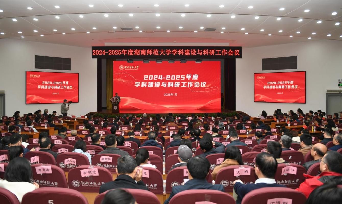 刘仲华作题为《开拓创新 特色发展 高质量推进“双一流”建设》的学科建设与科研工作报告,对获得表彰的集体和个人表示热烈祝贺,并向参会指导的专家表示衷心感谢。他指出,两年来,学校坚持以习近平新时代中国特色社会主义思想为指导,全面贯彻党的二十大和二十届历次全会精神,坚定不移走内涵式发展道路,学科建设、科研创新、社会服务成果丰硕,核心竞争力和综合实力明显增强。他强调,在肯定成绩的同时,必须清醒认识学校学科建设与科研工作面临的机遇与挑战,要进一步增强紧迫感和使命感,统一思想,积极谋划,以深刻识变、科学应变、主动求变的担当作为,找准新定位、开拓新格局。一是学科专业调整优化要在“平稳中求变”,以科技发展、国家战略需求为牵引,以国家急需学科专业发展引导清单为导向,在擦亮师范特色、巩固优化基本盘的基础上,深入推进“四新”建设,积极构建与我省产业体系相适应的学科专业体系。二是学科内涵式发展要在“融合中求变”,坚持“分类推进、特色发展”核心导向,坚守师范立本“一条主线”,一体推进理工突破、文科焕新、医学拓展、艺体做强等“四个突破”,着力探索学科特色发展之路。三是有组织科研要在“协同中求变”,改变“重个体、轻协同”的科研组织模式,依托重大平台,围绕量子科技、人工智能伦理、种业创新等战略方向组建跨学院、跨学科攻关团队;改革评价体系,鼓励交叉合作,力争产出标志性成果。四是科技成果转化要在“应用中求变”,把握现有成果转化良好态势,分别构建理工科与人文社科成果转化全链条体系,突出需求导向,强化与区域发展“深度嵌合”,并完善职务科技成果转化收益分配等支撑政策。