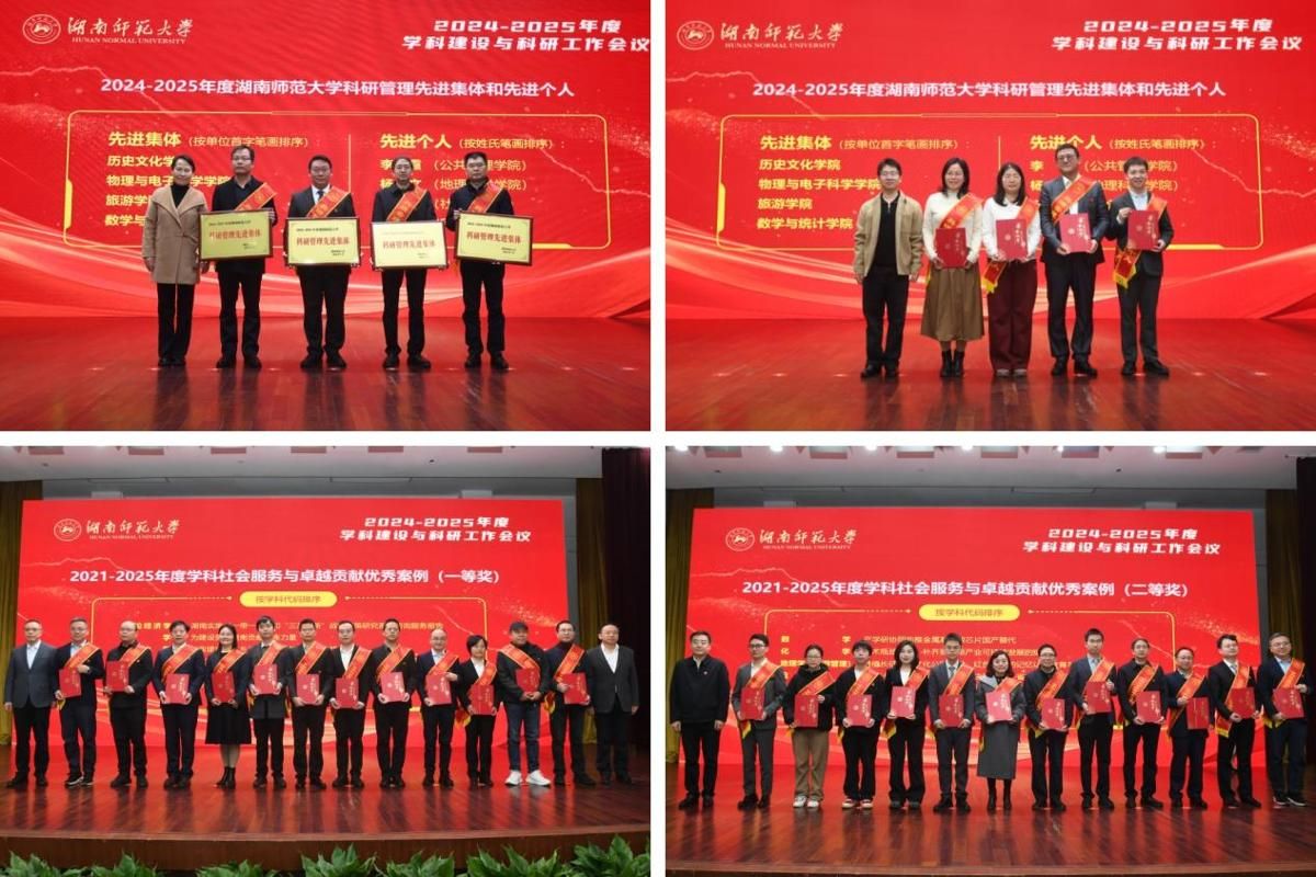 文学院徐朝红教授作为科研标兵代表、物理与电子科学学院翟亚新教授作为青年科研标兵代表、美术学院李少波教授作为优秀案例获奖代表分别作典型发言。他们分享各自在科学研究和社会服务领域的奋斗历程和心得体会,并表示将始终保持探索创新的干劲,在“十五五”新征程上砥砺深耕、勇毅前行。