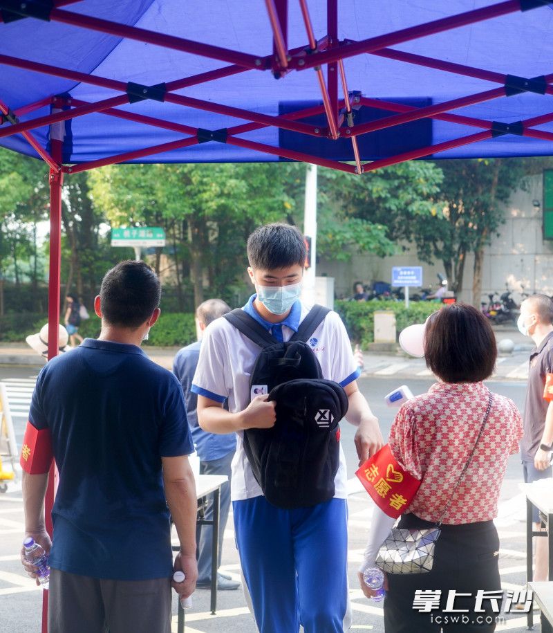 尤为值得一提的是,学校为了帮助学生缓解接种前的紧张情绪,在接种区还专门设置了心理服务区。作为心理服务区一名志愿者,上午7时30分,湖南师大附中心理教研组组长李志艳便早早上岗了。原本可以坐着工作,她却选择一直站着,将双眼紧紧盯住每一位进来接种的学生。